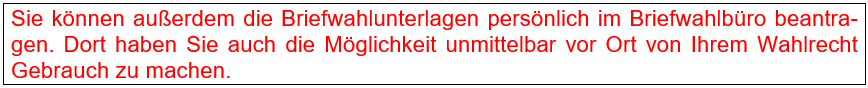 Eine telefonische Beantragung der Briefwahlunterlagen ist nicht möglich!